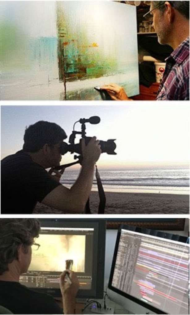 As the tech matured, he was able to connect his computer knowledge with his fine art paintings. In 2008 he created his first Moving Painting and sold them on commercial monitors through fine art galleries that represented his work.